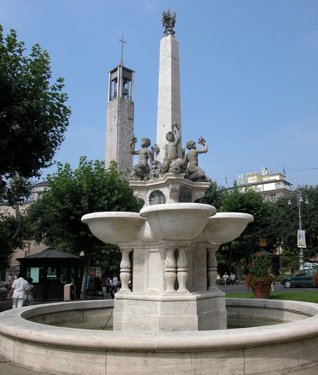 The Monumental Fountain, located in the central Piazza del Popolo, was built in 1926 and designed by architect Raffaello Brizzi.
