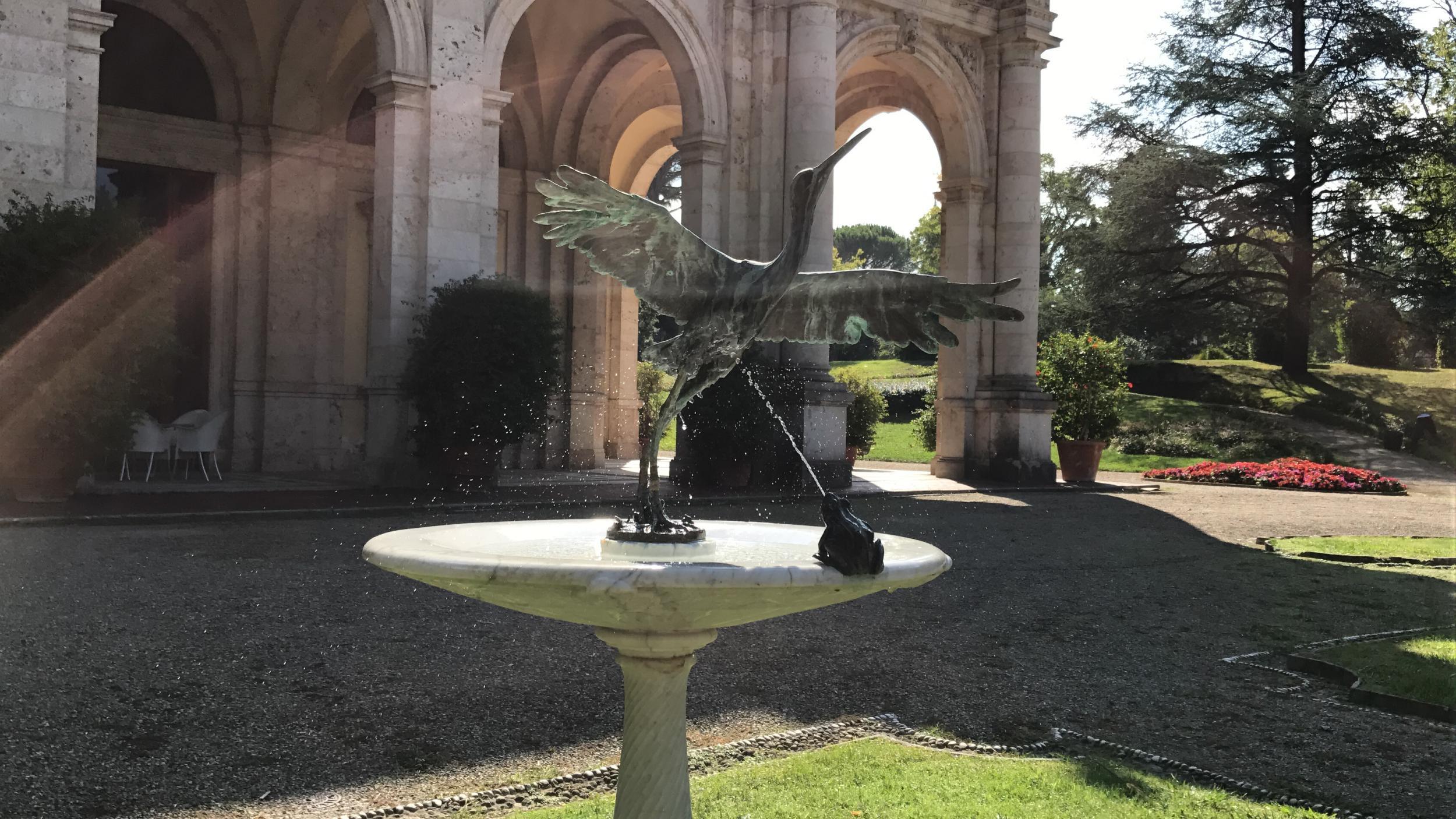 Davanti allo Stabilimento Regina, nel lussuoso parco del Tettuccio, si trova la fontana dell’airone, animale simbolo di Montecatini Terme, e della rana.