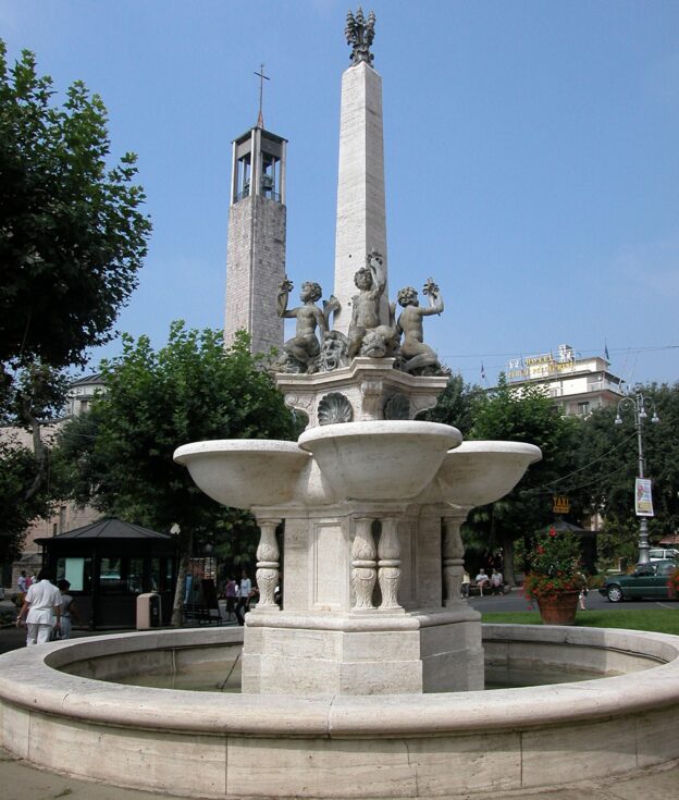 Immaginando la Stazione Ferroviaria come una porta d'ingresso alla città, il primo monumento che accoglie il turista è proprio una fontana, la Fontana Mazzoni.